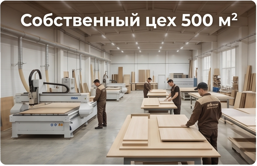 Собственный завод площадью 500 м². Современные станки с ЧПУ, фрезеровка, покраска, сборка — всё на одном производстве.